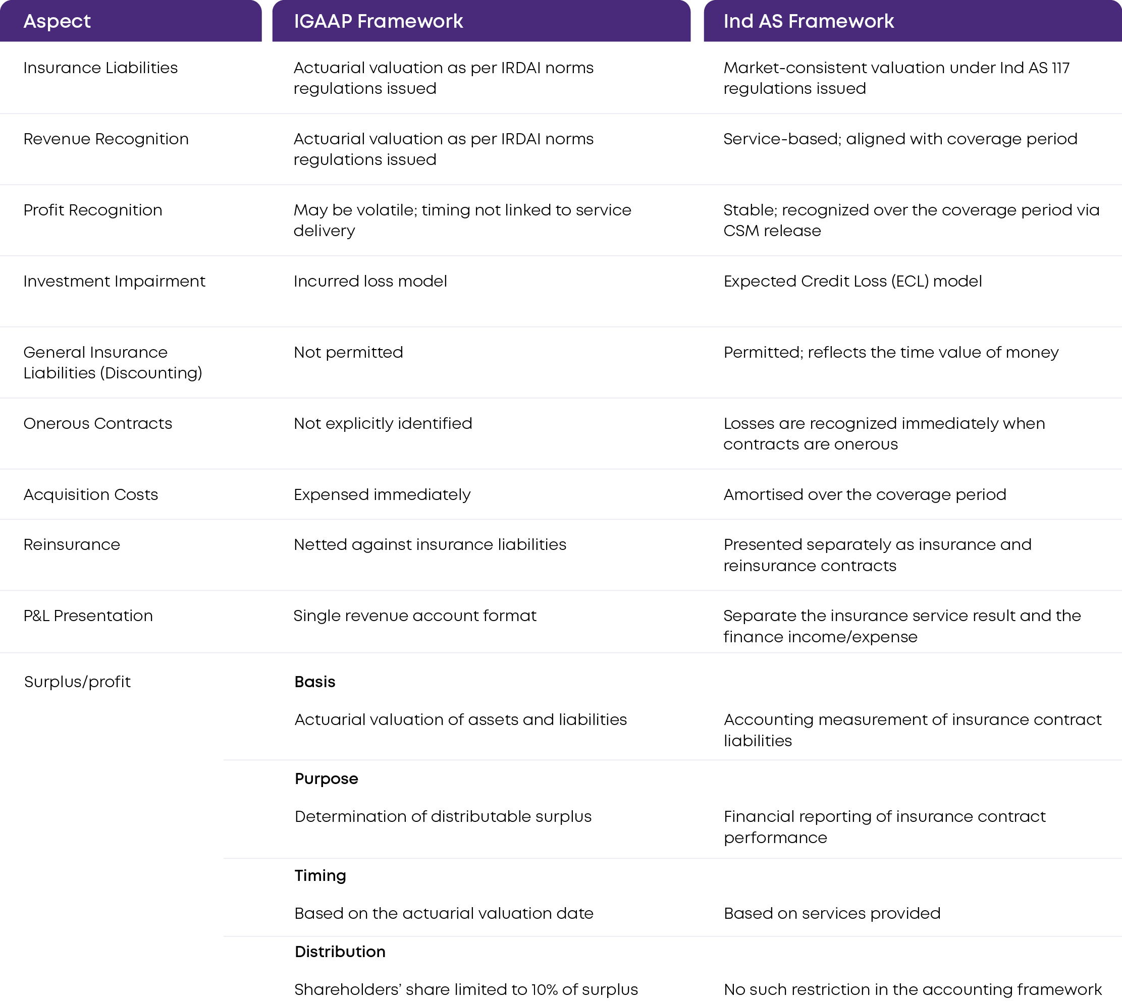 Under the existing IGAAP framework, insurance liabilities are measured using actuarial valuation norms prescribed by IRDAI. These valuations are primarily designed to support solvency monitoring and policyholder protection, not to reflect current market-consistent economic assumptions. As a result, profit patterns under IGAAP often do not clearly reflect the economic performance of insurance contracts, and the reported financial position may diverge materially from economic reality.